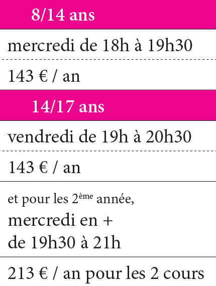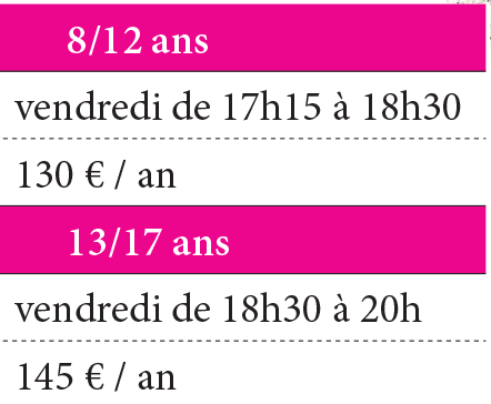 Il n’y a pas d’âge pour improviser ! Le secret est d’avoir un imaginaire… Nous travaillerons l’expression corporelle, la confiance en soi et aux autres, l’imaginaire, le personnage… Confirmés, débutants, timides ou expressifs, venez découvrir cette belle discipline et rejoindre les Impropotames Poussins ou Juniors !