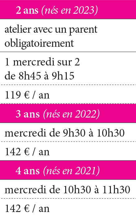 Ludik’ Mouv’ (ou éveil corporel) est l’activité idéale dédiée aux tout-petits pour qu’ils se défoulent et apprennent à maîtriser leur corps. Basée sur le plaisir et le jeu, elle leur permet de développer leur sens de l’équilibre, la coordination des mouvements, la souplesse, la force et la confiance en soi, le tout dans un contexte sécurisé et sécurisant.